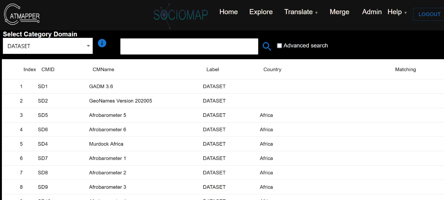In some cases, you may want to know what datasets have been cataloguedin SocioMap in general. To download the full current list of datasets, go to