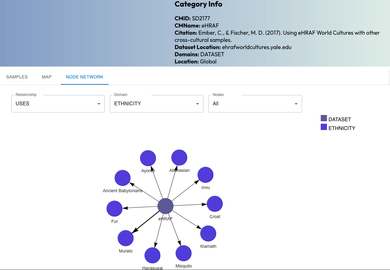 Clicking the node will lead to the Info page for the eHRAF dataset. Here you can see all the other categories that are also described within that dataset.