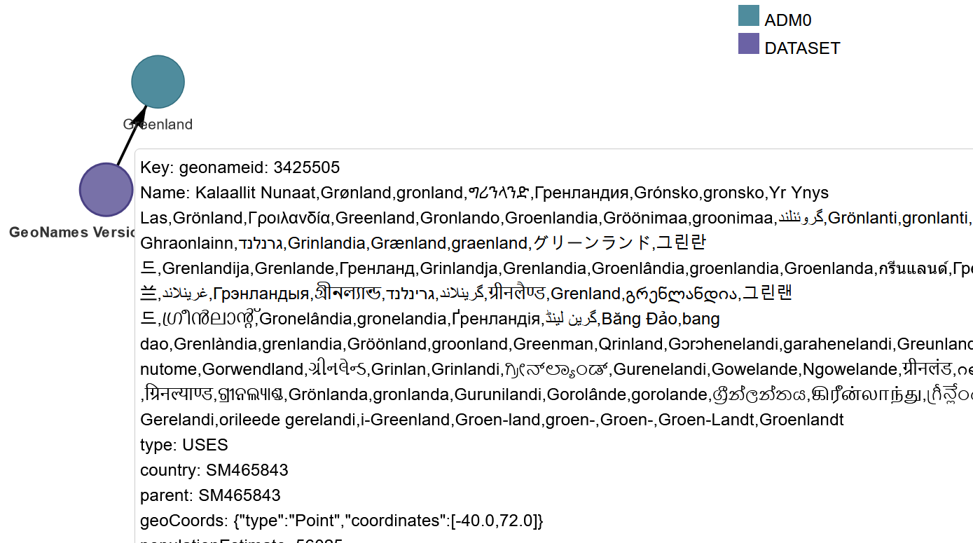 Figure 1. Contents of the USES tie from Geonames to Greenland.